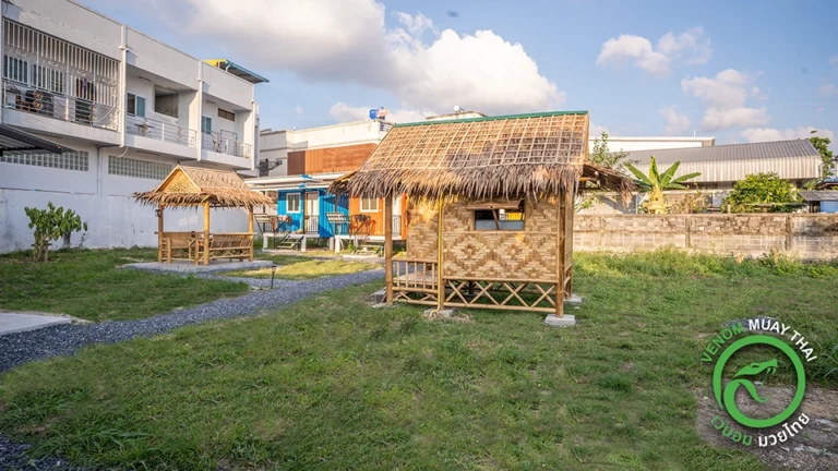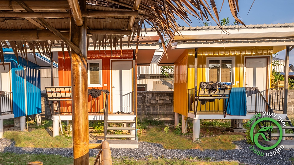 Accommodation is conveniently located within the gym complex, offering options from budget bamboo huts with fans to modern cabins equipped with air-conditioning. All guests receive new bedding weekly and enjoy the benefit of training twice daily, just steps from their rooms. This immersive setting allows Muay Thai Fighter to live and breathe Muay Thai, building camaraderie with other trainees and embracing a focused lifestyle.